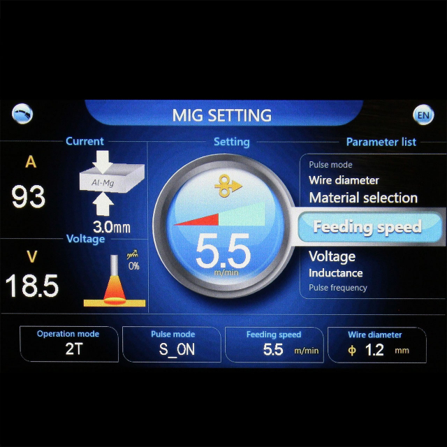 Bietet Hilfe im SYNERGY-Modus zum Einstellen der Schweißparameter basierend auf dem vom Benutzer ausgewählten Materialtyp und der Dicke sowie dem Schweißdrahtdurchmesser. Kann im MIG- oder MAG-Modus Einzel- oder Doppelimpulsstrom verwenden. Präzise Steuerung für Strom, Spannung, Drahtvorschubgeschwindigkeit und Induktivität. Tragbare und erhöhte Mobilität dank vier Rädern und Platz für eine Gasflasche in voller Größe.