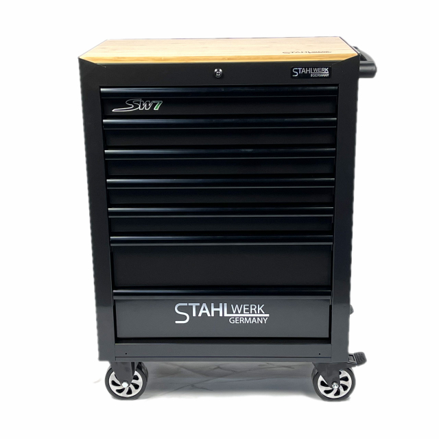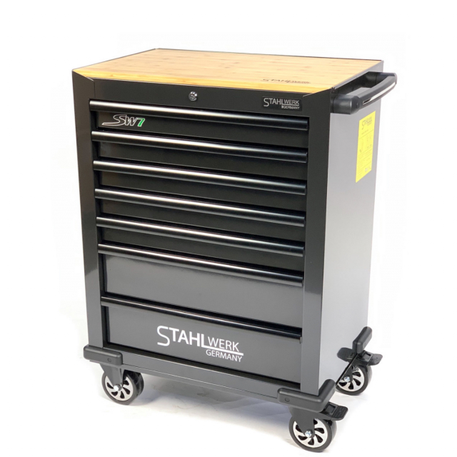 Deze Stahlwerk SW7 gereedschapswagen beschikt over 7 kogelgelagerde laden waarvan 6 gevulde laden met 295 delig gereedschap.