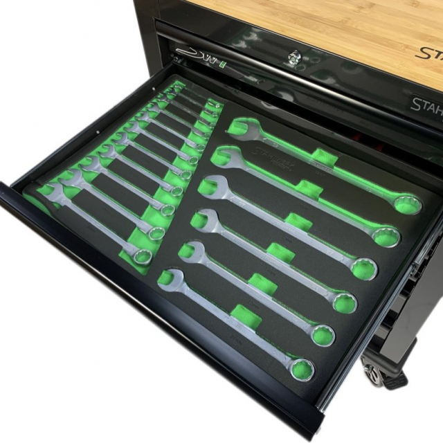 Het gereedschap zit opgeborgen in stevige schuimrubberen modules waardoor deze optimaal beschermd zijn.