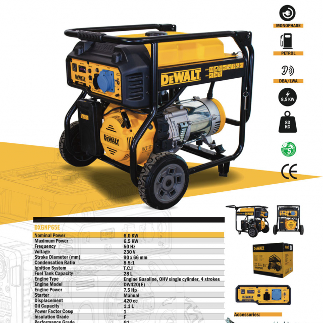 DEWALT DXGNP65E BENZIN-GENERATOR 230V 6500W
