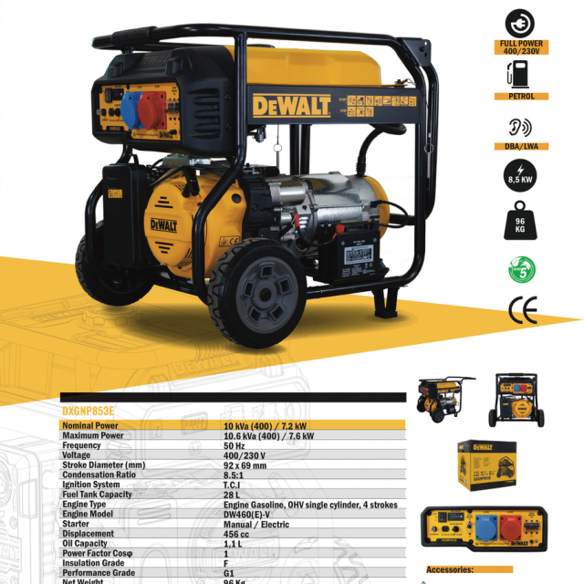 DEWALT DXGNP853E BENZINGENERATOR 230V/400V 10,6KVA