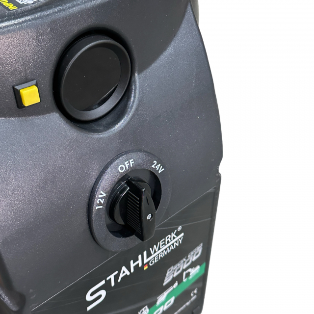 Der Batterie-Booster SW5000 von Stahlwerk Germany ist eine hochwertige Lösung zum schnellen und zuverlässigen Starten von Fahrzeugen und Maschinen sowohl mit 12V- als auch mit 24V-Batterien. Mit einem beeindruckenden Spitzenstrom von 5000 Ampere garantiert dieser Batterie-Booster selbst unter anspruchsvollsten Bedingungen müheloses Starten. Ob Autos, Boote, LKWs, Traktoren, Hubschrauber oder Bagger – dieser Batterie-Booster sorgt für die nötige Leistung und Zuverlässigkeit, um jedes Fahrzeug oder jede Maschine schnell wieder einsatzbereit zu machen.