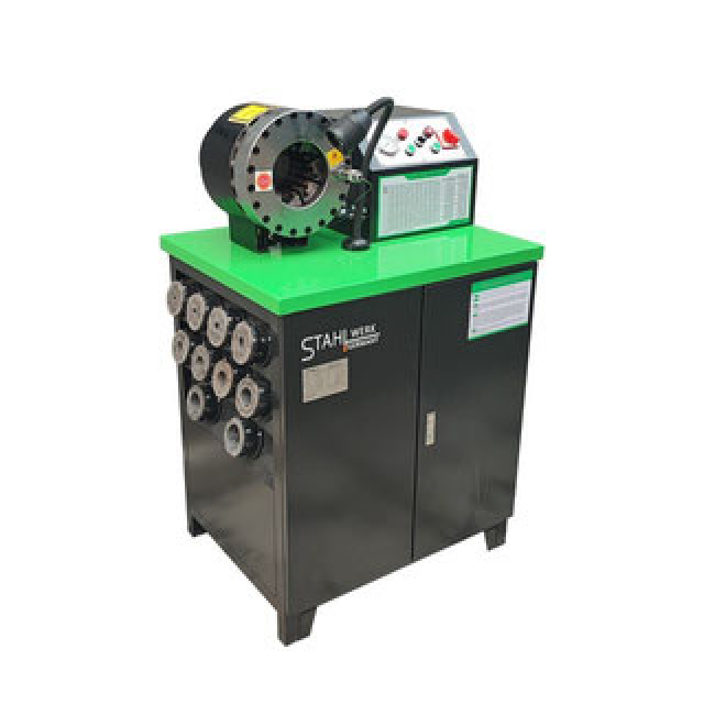 Entdecken Sie mit der Schlauchpresse SW-H100 von Stahlwerk Germany den ultimativen Partner für alle Ihre Bauanforderungen. Diese leistungsstarke Maschine wurde speziell für den Bau- und Hydraulikbereich entwickelt und ist somit ein unverzichtbares Werkzeug für Profis, die mit Baumaschinen, Hochdruckschläuchen und Hydraulikgeräten arbeiten.