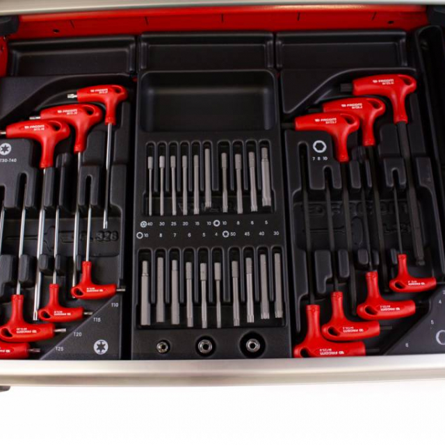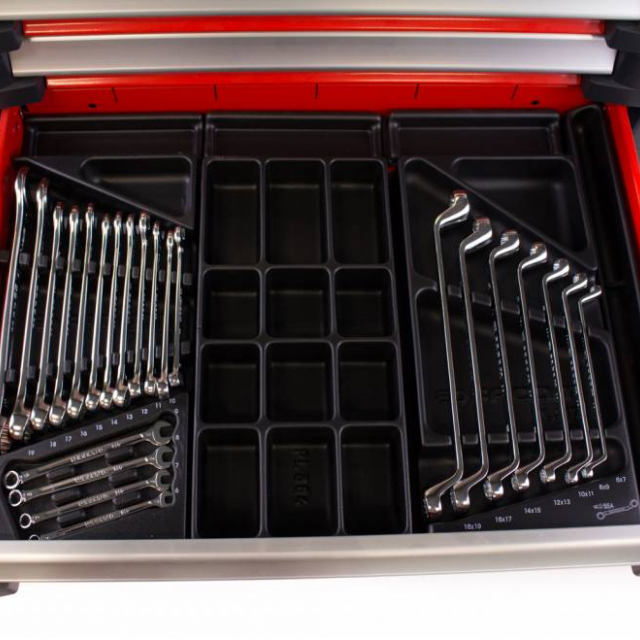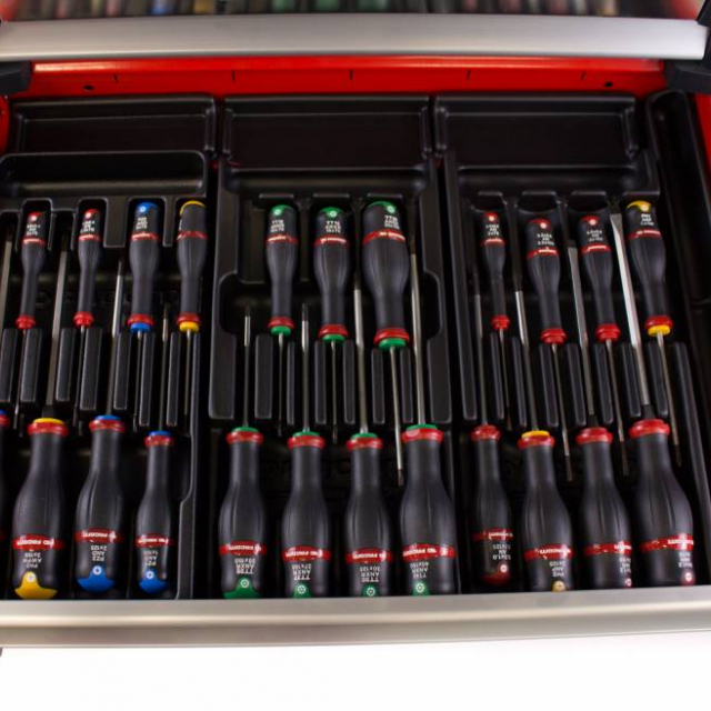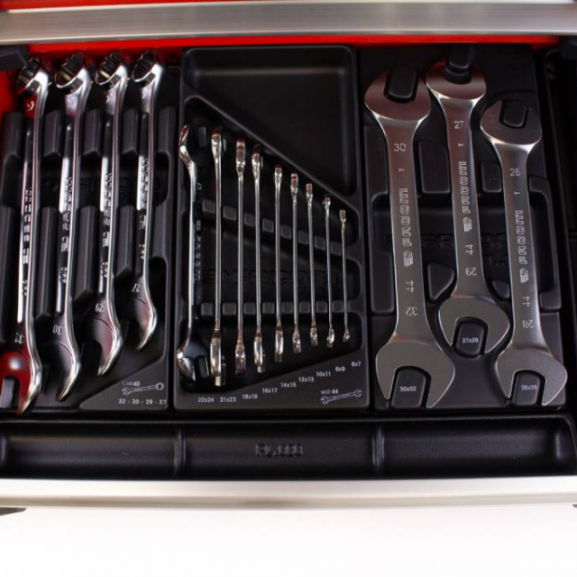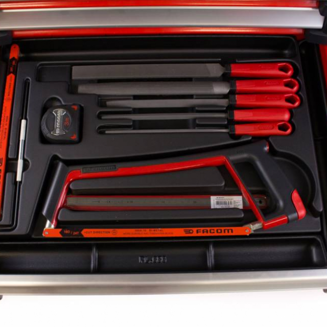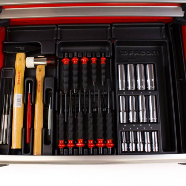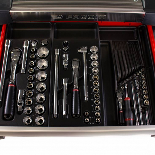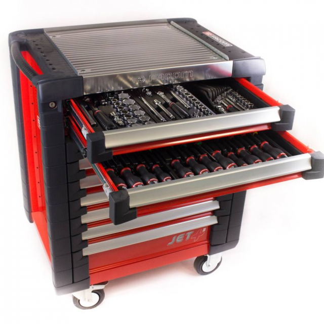 Ce chariot à outils Facom est rempli de pas moins de 22 modules d’outils. Le chariot a un plan de travail en aluminium et des tiroirs à roulement à billes. Ce chariot à outils est équipé d’une garantie à vie de la garantie usine Facom et offre la meilleure qualité.