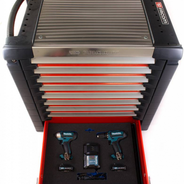 Dans le dernier tiroir, vous trouverez 2 machines électriques Makita (perceuse et clé à chocs) qui complètent ce magnifique chariot à outils!